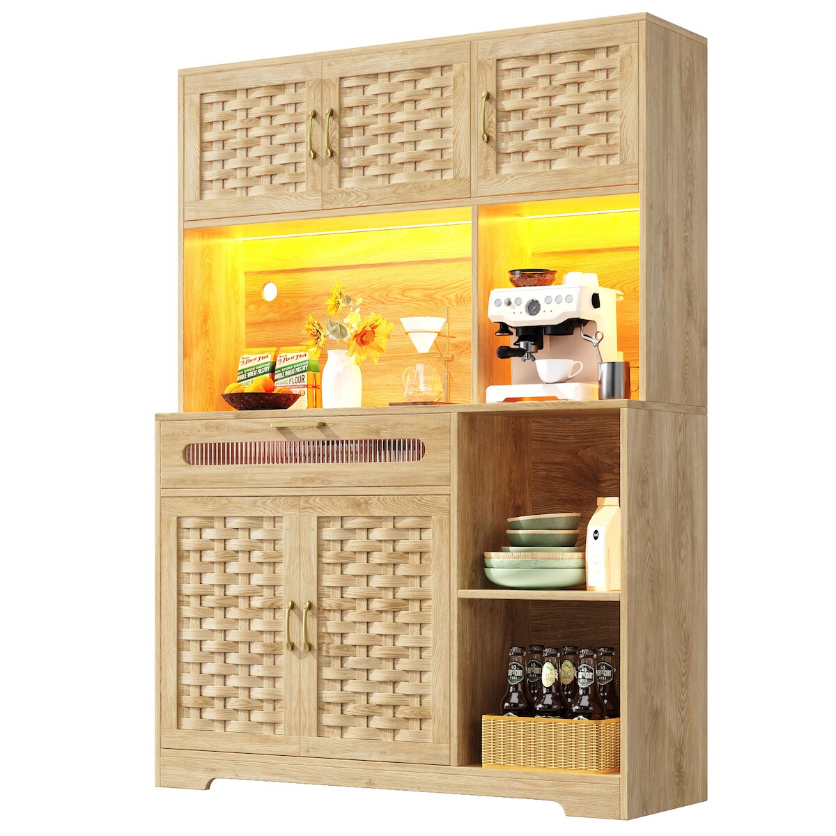 Vitrine OTTO HOME "LOGO75, Einlegeboden verstellbar,1Glastür,1Holztür,Wohnzimmer,Stauraum", beige (kernbuche teilmassiv), B:90cm H:100cm T:40cm, Holz teilmassiv, Schränke, Vitrine, B/T/H:90/40/100cm,Front massivholz,6 Fächer,Griffe silberfarben, geölt
