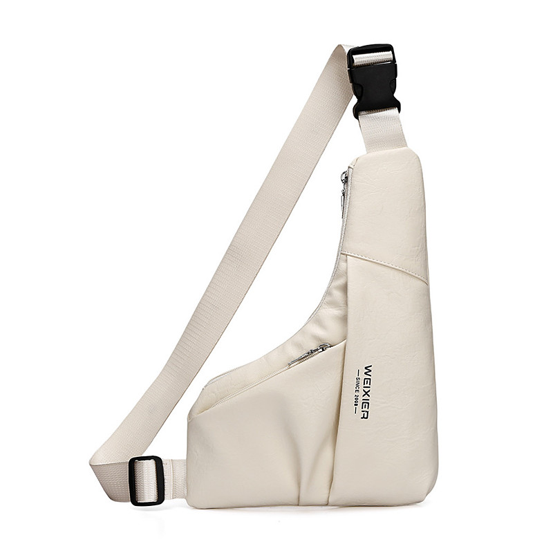 Men's Brown Faux Leather Crossbody Sling Bag – Vintage Chest Shoulder Pack with Adjustable Strap and Multiple Zipper Pockets for Travel, Outdoor and Daily Casual Wear