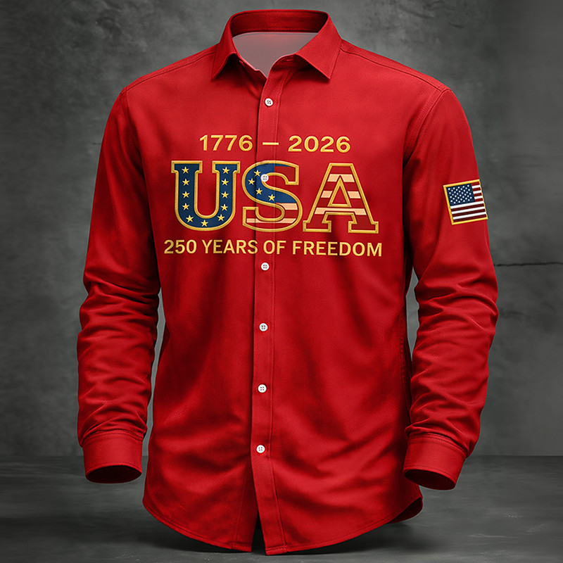 Men's US Flag Patriotic America's 250th Anniversary Shirt Button Up Shirt Long Sleeve Vintage Retro Holiday Casual Daily Spring Fall Turndown 3D Print Linen Like Shirt Blue White Red