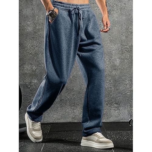 Per uomo Pantaloni della tuta Pareggiatore Pantaloni Pantaloni casual A cordoncino Vita elastica Liscio Comfort Caldo Lunghezza intera Esterno Informale Giornaliero Sportivo Di tendenza Nero Blu