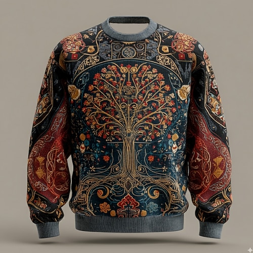 Per uomo Vichingo Albero della vita Maglione Maglieria Girocollo Retrò Vintage Casual Vacanza Streetwear Quotidiano Stampa 3D Lavoro a maglia Tenere al caldo Manica Lunga Autunno Inverno Nero Blu