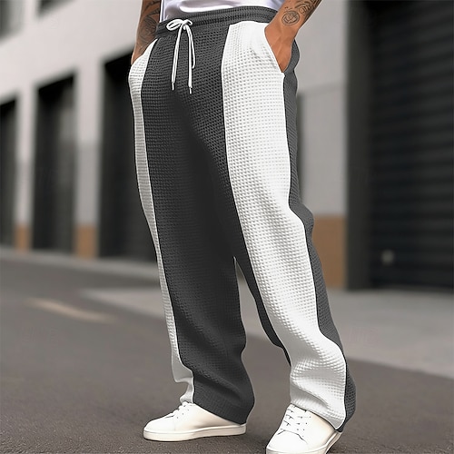 Per uomo Pantaloni da tuta Pantaloni Pantaloni Larghi Pantaloni della tuta a gamba dritta Pantaloni a Nido d'Ape Coulisse Tasca Elastico in vita Blocco di colori Comodità Morbido Casuale Quotidiano