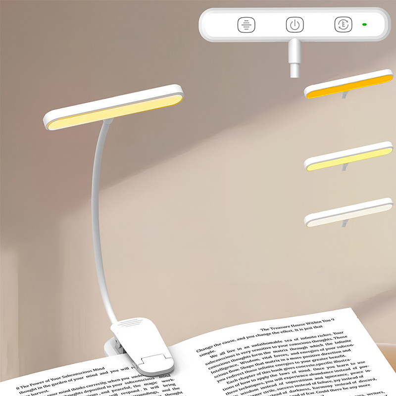 LED Rechargeable Book Light for Reading in Bed with Memory Function Eye Caring Night Light 3 Colors 5 Brightness Flexible Goose Neck Lightweight Clip On Book Reading Light Adjustable Brightness