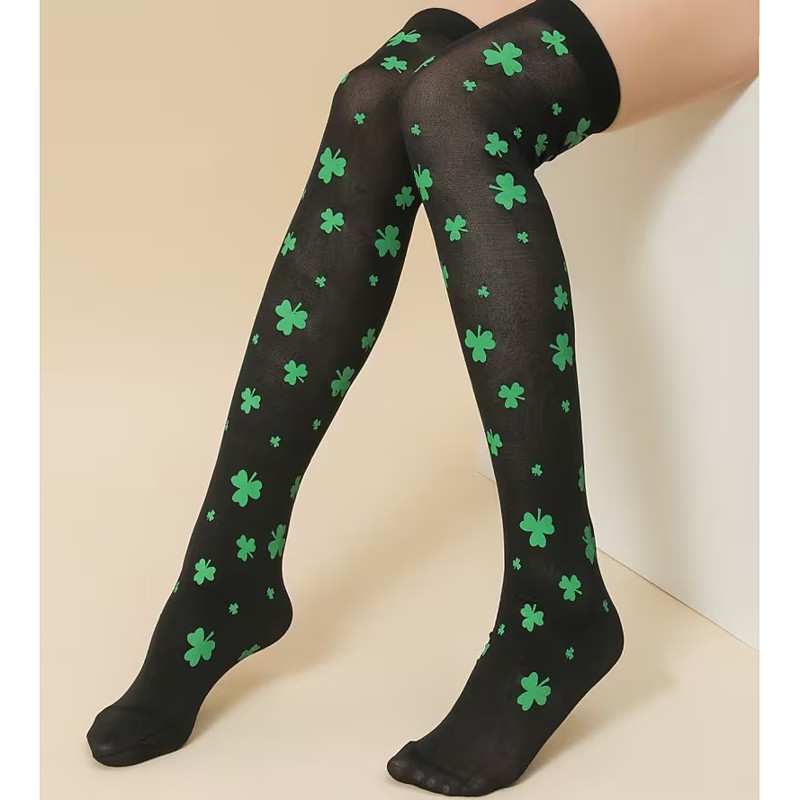 1 Pair St. Patrick's Day Party Socks, Green Camo Over-the-Knee Knee-High Socks, 85% Polyester 15% Spandex, 156gsm Knit, Festive Irish Holiday Socks