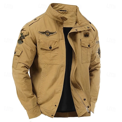 Herren Rentier Cargo-Jacke Windbreaker Militärjacke Praktisch Lässig Outdoor Campen und Wandern Bestickt Seitentaschen Frontreißverschluss Herbst Winter Stehkragen Langarm Schwarz Kaki Armeegrün