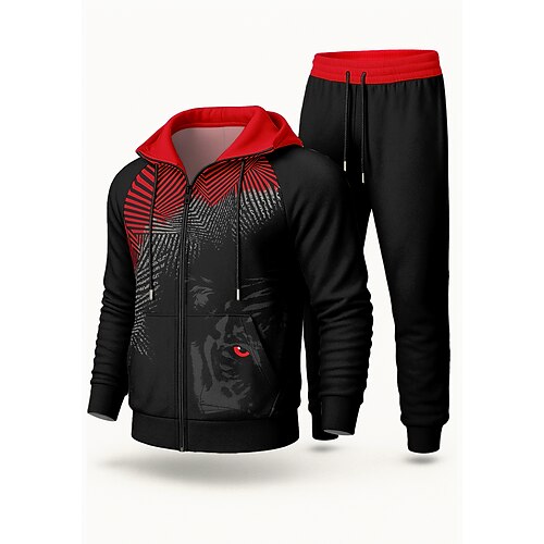 Per uomo Felpa con cappuccio Tuta da Ginnastica Tuta da 2 pezzi Coulisse Con zip Con Motivo Animale Set di Abbigliamento Sportivo Set di Abbigliamento Completo Abbigliamento Autunno Nero Lavoro