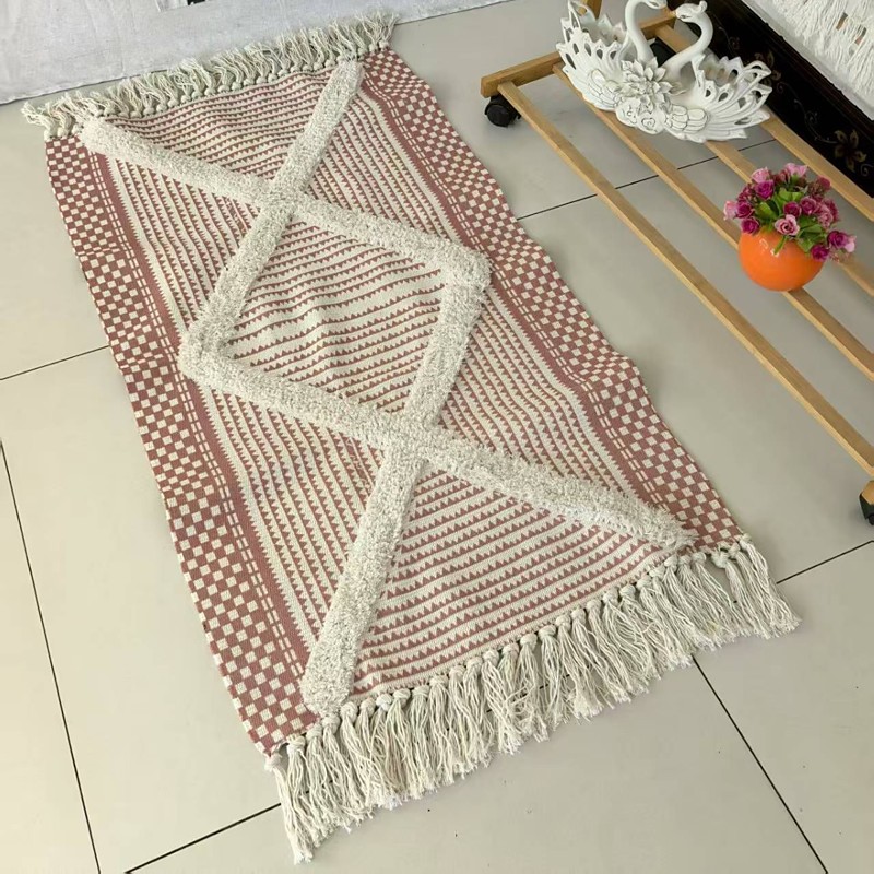 Area Rugs Bohemian Tassel Rug For Living Room And Bedroom, Cotton Linen Woven Floor Mat, Soft Non-Slip Machine Washable Rug, Decorative Bedside Carpet