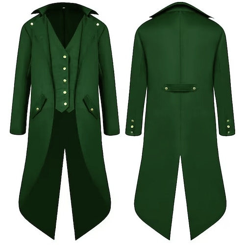 Retro Vintage Punk Gothic Mittelalter Mantel Smoking Frack Vampir Ritter Kostüm Herren Steampunk Weihnachtsaufführung Party Abend LARP Mantel für Erwachsene Ebenezer Scrooge Elf Kostüm