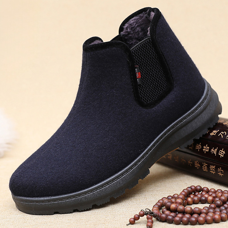Men's Navy Blue Slip-On Boots – Soft Faux Wool Lining for Warmth and Comfort, Perfect for Winter Outings and Casual Wear