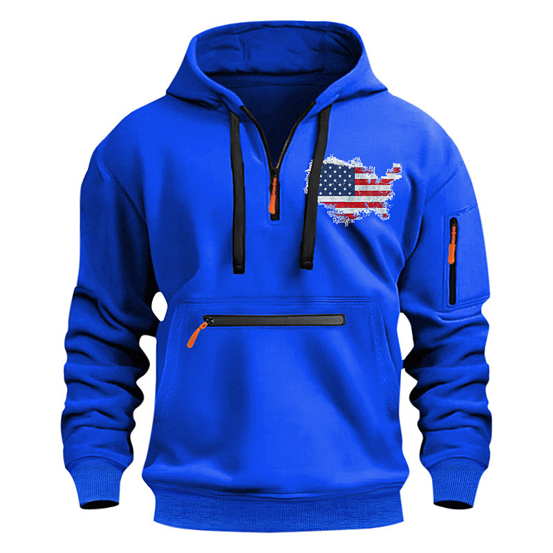 Men's Hoodie Pullover Quarter Zip Hoodie Blue Black Wine Navy Blue Camel Hooded American US Flag Pocket Print Daily Sports Outdoor Sports Streetwear Sportswear Casual Fall Winter Clothing Apparel