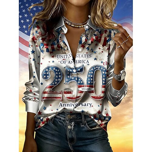 Giorno dell'Indipendenza Americana Per donna Camicia Camicia in raso Camicia button-down Camicia casual Stampato Grafico Bandiera Classico Casual Manica Lunga Colletto a Camicia Top Regolari