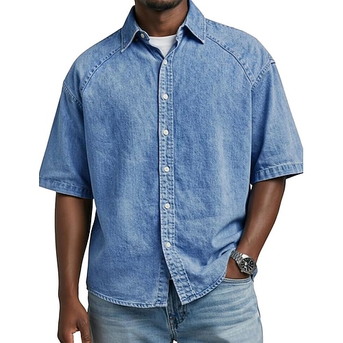 Per uomo Camicia Camicia button-down Camicia casual Camicia 100% cotone lavaggio acido Nero Verde chiaro Rosa Verde scuro Viola Manica Corta Semplice Bavero Quotidiano All'aperto Bottoni Abbigliamento