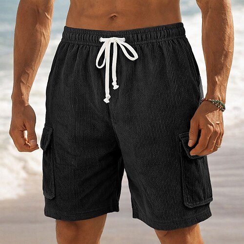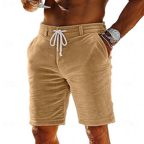 Herren Shorts Sommershorts Freizeitshorts Cordshorts Tasche Kordelzug Elastischer Bund Einfach Komfort Atmungsaktiv Kurz Outdoor Urlaub Sport Lässig Schwarz Hellgrün