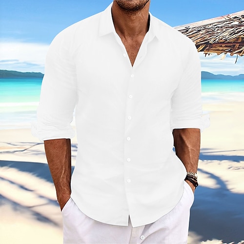 Per uomo Camicia di lino Camicia Estiva Abbigliamento da spiaggia Camicia casual Camicia con Bottoni Semplice Vacanza Casuale Giallo Chiaro Bianco Rosa Blu marino scuro Manica Lunga Primavera Estate