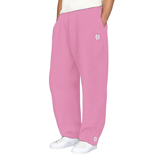 Herren Jogginghose Jogginghose mit weitem Bein Hose Jogginghose mit offenem Saum Kordelzug Elastischer Bund Einfach Atmungsaktiv Volle Länge Sport im Freien Lässig Täglich Mode Basic Schwarz Rosa