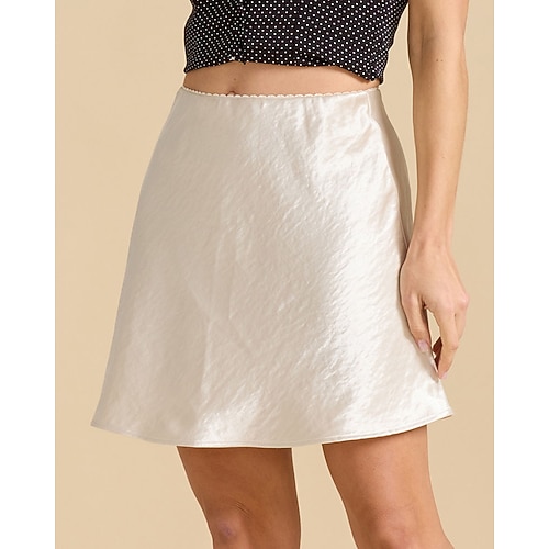 Per donna Gonna Elegante Moda Casual Mini Vita media Gonne Semplice Arricciato Elasticizzato Quotidiano Streetwear Nero Marrone Verde militare Beige Estate Spandex Poliestere