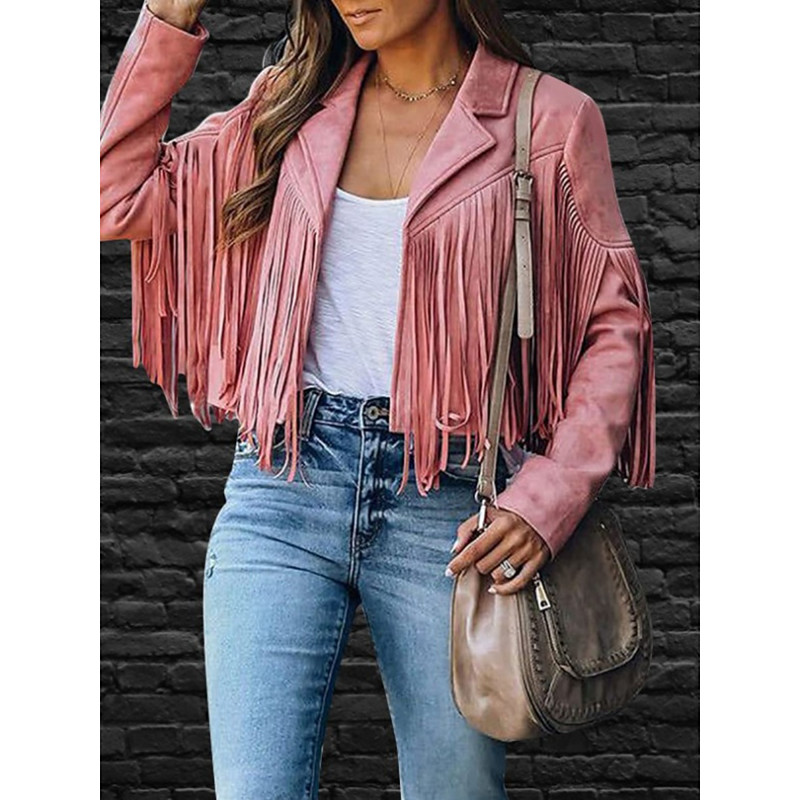 Women's Casual Jacket Comfortable Breathable Tassel Casual Plain Vacation Street Casual Daily Wear Open Front Short Lapel Regular Fit Long Sleeve Outerwear Black Pink Orange Spring Fall