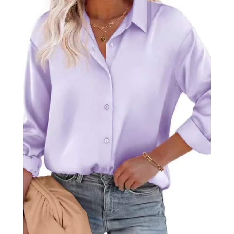 Women's Shirt Elegant Satin Blouse Plain Elegant Stylish Long Sleeve Shirt Collar Regular Tops Daily Holiday Going out Buttons Pink Purple Orange Brown Khaki Summer Spring Fall