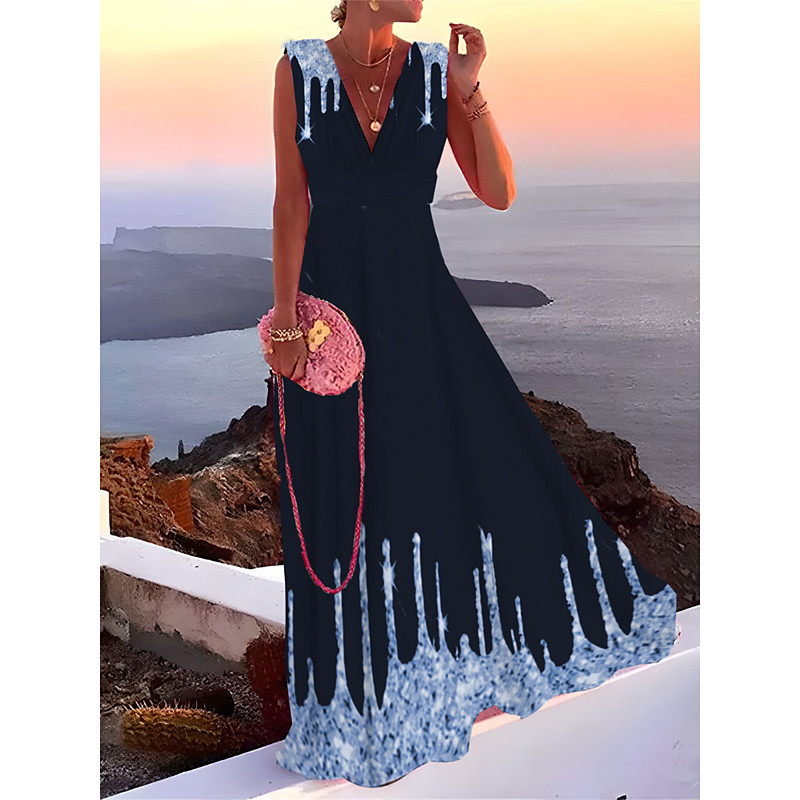 Women's Long Dress Maxi Dress Prom Dress Party Dress Wedding Guest Dress Swing Dress Fashion Party Mature Vacation Wedding Guest Special Occasion Regular Fit Ombre Sleeveless Deep V Silver Yellow