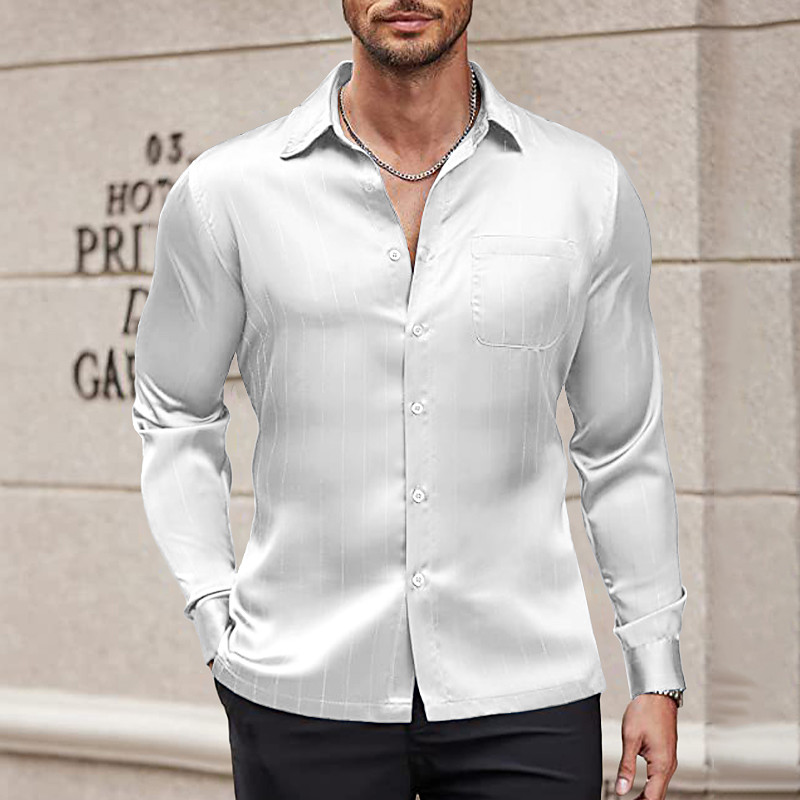 Men's Shirt Satin Shirt Dress Shirt Button Up Shirt Prom Shirt Stripes Business Wedding Light Blue Black White Wine Long Sleeve Shirt Collar All Seasons Clothing Apparel Plain