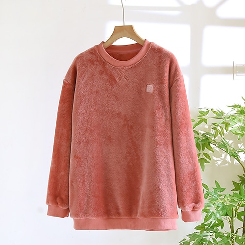 Per donna Pigiama felpato foderato in pile Felpa Pullover Pullover Felpe Lettera Caldo Streetwear Casual Manica Lunga Girocollo Top lunghi Casa Abbigliamento Quotidiano Casuale Stampato Nero Rosa