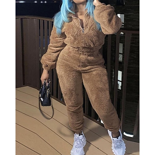 Per donna Abbigliamento da Casa Tutina Caldo Moda Sexy Colore Puro Cerniera Pantalone Vacanza Casa Streetwear Manica Lunga Collo Alto Blu Nero Rosa Cammello Beige Autunno Inverno Vestibilità regolare