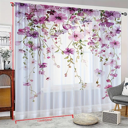 Tende minimaliste nordiche con fiori botanici, set da 2 pannelli, in poliestere con passante per asta, drappeggi floreali per camera da letto, soggiorno, decorazione per la casa, regalo per le vacanze