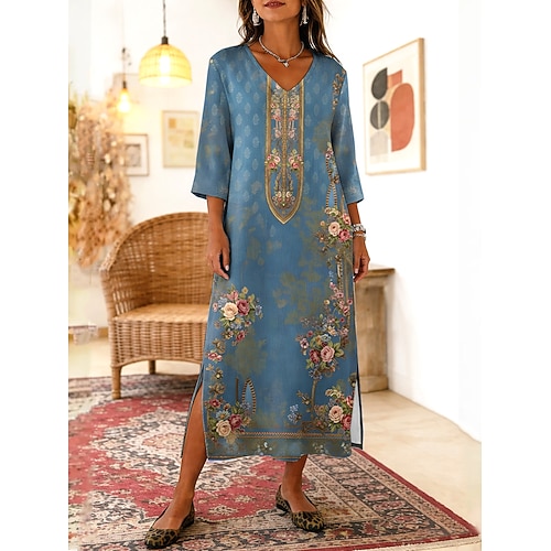 Per donna Abito Lungo Maxi Abito Abito Boho Abito a Tubino Vestito Estivo Abito da Spiaggia Bohemien Vacanza Etnico Spiaggia Ferie Data Vestibilità comoda Floreale Grafico Astratto Manica 3/4 Scollo