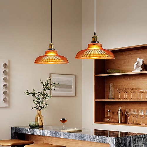Lampadario a sospensione vintage a cupola grande con vetro a righe verdi, 1 luce, ideale per isola cucina, sala da pranzo e bar. Alimentazione 110-240 V.