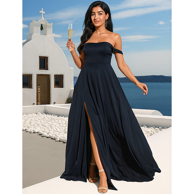 A-Line Floor Length Formal Dresses Evening Gown Mother of the Bride Dress Sleeveless Off Shoulder Elegant Vintage Party Spandex with Split Front