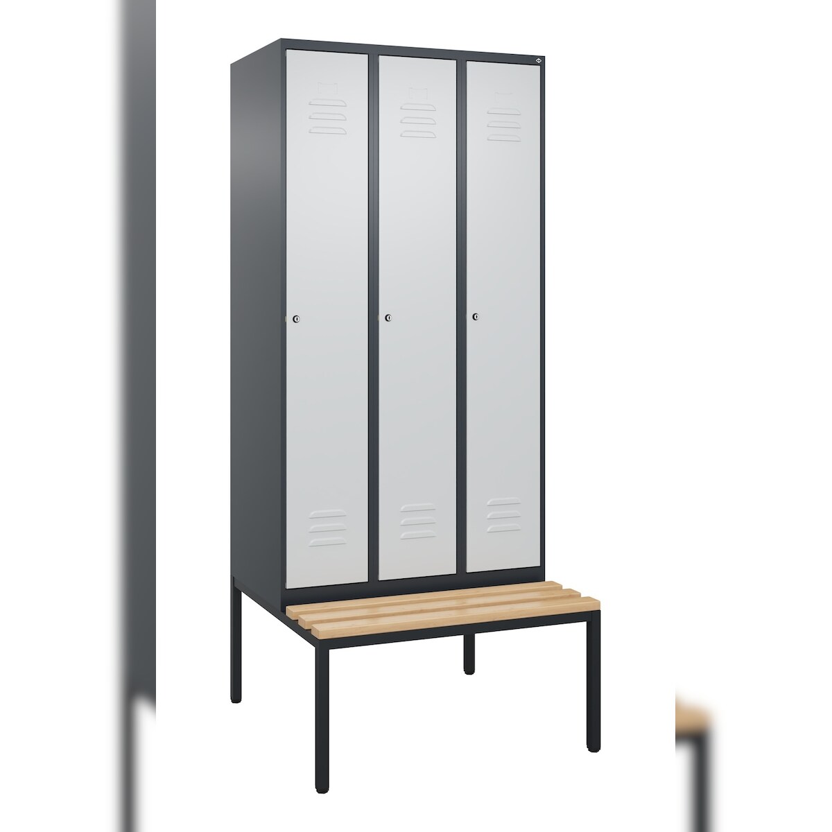 C+P Spind Classic PLUS, Buche untergebaute Sitzbank 3 Abteile, HxBxT 212x90x82cm, Zylinderschloss, Anthrazit/Hellgrau von PROREGAL