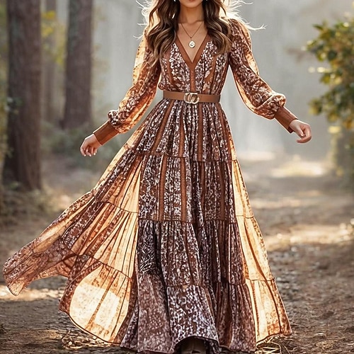 Stile Boho Retrò Vintage Boho Vestito Lunghe Hippie Disco Stile Boho Costume Per donna Mascherata Festival Musicale Festa a tema retrò Adulti Vestito