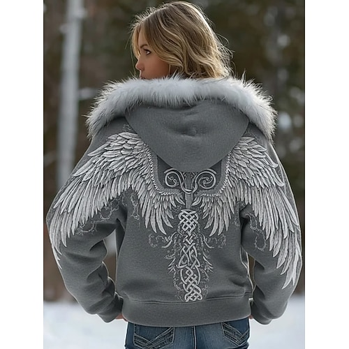 Felpe con cappuccio e zip da donna in stile vichingo, grafiche, animali, stile western, etnico, casual, a maniche lunghe, con cappuccio, stile normale, casual, da strada, blu navy, nero, grigio,