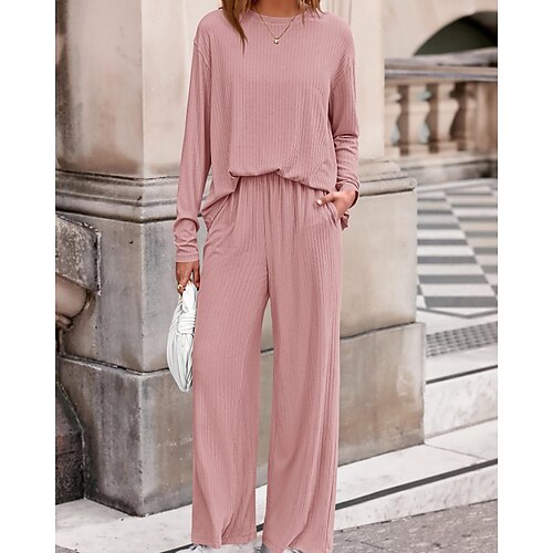 Per donna Caldo Felpa Sherpa Pantaloni in pile Pantaloni maglione Set Manica lunga Girocollo Tinta unica Alfabetico Esterno Nero Rosso Marrone chiaro Primavera Oversize