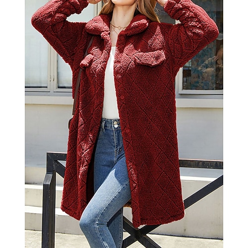 Per donna Cappotto Invernale Cappotto Teddy Caldo Confortevole Cerniera Tasca Moda Casual Tinta unica Vacanza Streetwear Casuale Abbigliamento quotidiano Lungo Collo ripiegato Vestibilità regolare