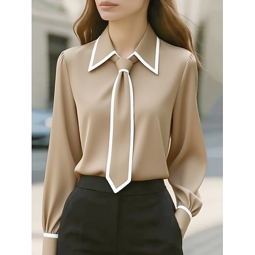 Per donna Blusa Tinta unica Elegante Essenziale Casual Manica Lunga Colletto a Camicia Top Regolari Lavoro Quotidiano Bottoni Nero Bianco Cachi Primavera Autunno Inverno