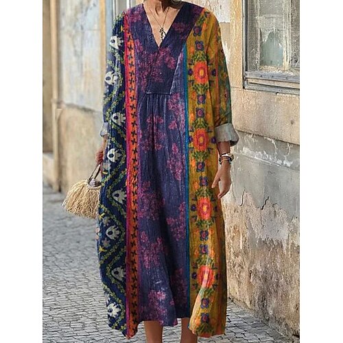 Per donna Abito maxi Vestito Estivo Abito a trapezio Casual Boho Ferie Vestibilità comoda Grafico Geometrico Manica Lunga Scollo a V Rosa Blu Viola Verde Estate Primavera Autunno