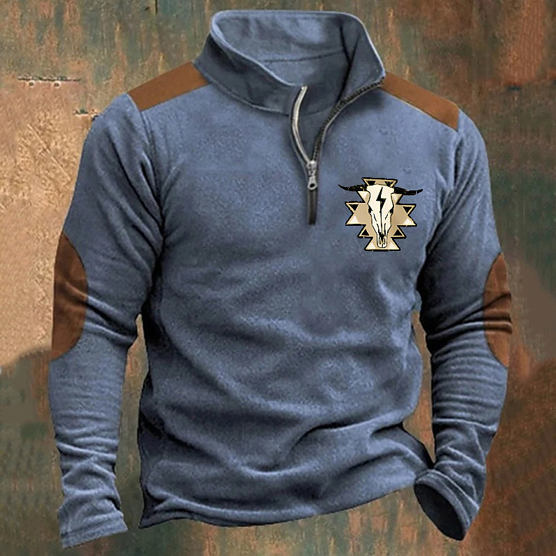 Men's Sweatshirt Quarter Zip Sweatshirt Blue Brown Khaki Light Grey Dark Gray Half Zip Graphic Cow Print Print Quarter Zip Christmas Daily Holiday Other Prints Polyester Streetwear Casual Fall Winter