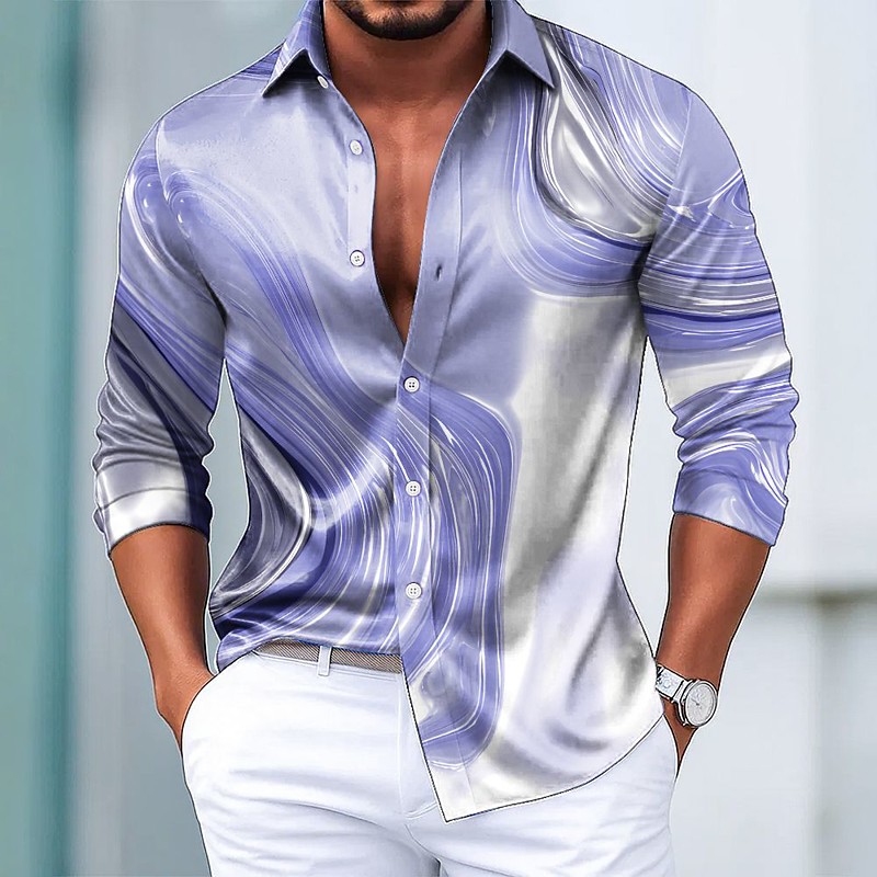 Men's Geometric Pattern Marble Abstract Liquid Art Shirt Stand Collar Shirt Long Sleeve Fashion Casual Dailywear Holiday Spring Fall Mandarin Collar Band Collar 3D Print Button Up Shirts Blue Purple