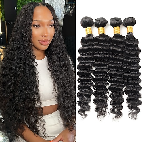 fasci di capelli umani con onde profonde (4 fasci di capelli umani con onde profonde da 18, 18, 20, 20 pollici) fasci di capelli umani brasiliani colore 1b per donne