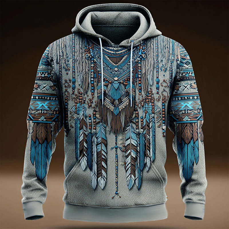 Men's Tribal Pullover Hoodie Sweatshirt Fashion Ethnic Vintage Retro Crew Neck Outdoor Party Gift Travel Blue Brown Green Drawstring Fall Winter Designer S M L XL XXL XXXL