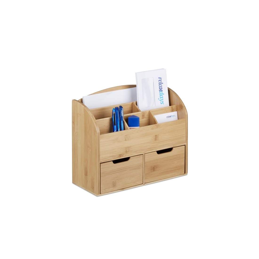 Bambus Desk Organizer 2 Skuffer Bordplade Opbevaringsholder Office Desk Butler