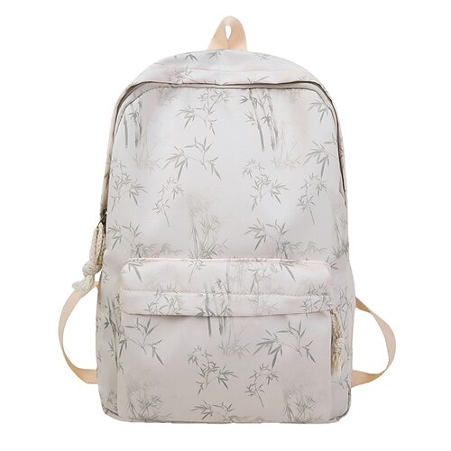 Ästhetischer Canvas-Rucksack für Damen mit Bambus-Print – leichte Schultasche für Teenager und Studentinnen