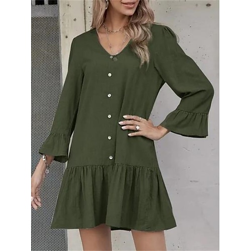 Per donna Mini Abito Abiti in cotone e lino Abito a Tubino Vestito Casual Moda Essenziale Moderno Manica del polsino svasato Quotidiano All'aperto Vacanza Vestibilità regolare Vestibilità comoda