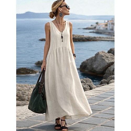 Per donna Abito maxi Abiti in cotone e lino Abito a Tubino Vestito Estivo Abito Bianco Streetwear Casual Vacanza Vestibilità comoda Senza Maniche Girocollo Nero Bianco Giallo Grigio Estate
