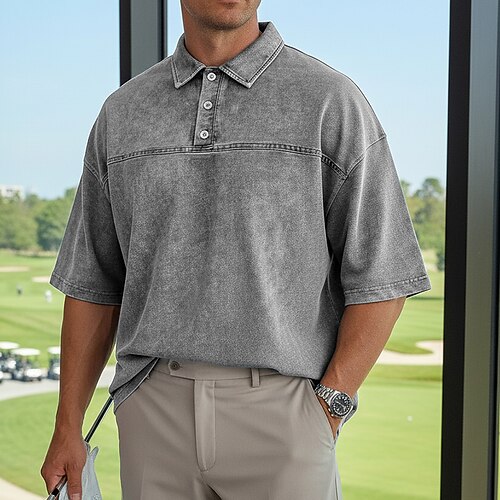 Per uomo Camicia lavata con acido Casuale Affari Colletto Polo a Coste Manica Corta Moda Essenziale Tinta unica Blocco di colori Bottoni Lavato Estate Primavera Primavera Autunno Vestibilità comoda