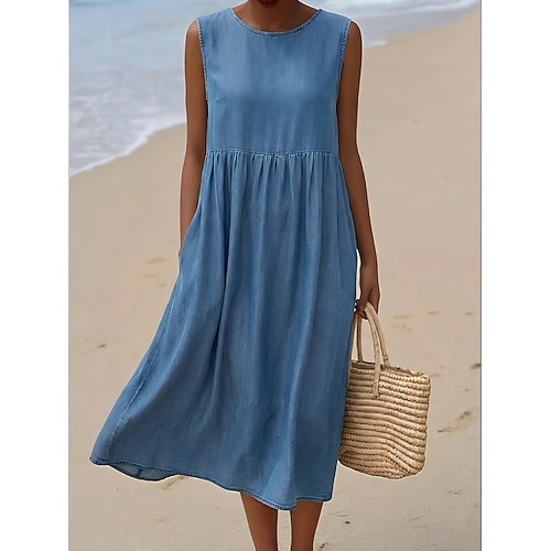 Per donna Abito Midi Abito a trapezio Abito Estivo Casual Quotidiano Vestibilità comoda Semplice Senza Maniche Girocollo Blu blu navy Nero Estate Primavera