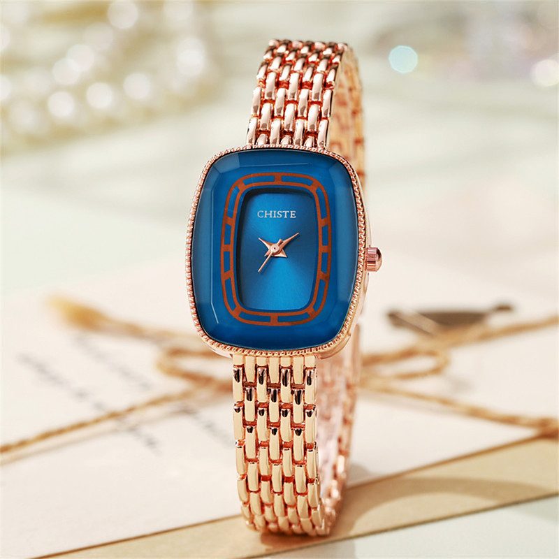 Fashion Women's Watch with Gold Oval Case and Simple Dial IPX7 Waterproof Stainless Steel Alloy Strap Quartz Watch