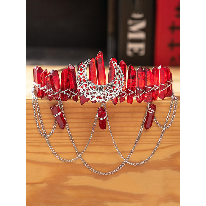Women's Boho Crystal Crown Headpiece - Mystical Quartz Moon Headband in Multiple Colors - Perfect for Carnival Masquerade Costumes