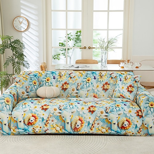 Copridivano rinfrescanti con stampe estive, copridivano universale a forma di L, copridivano elasticizzato in seta ghiacciata per divano da 1/2/3/4 posti